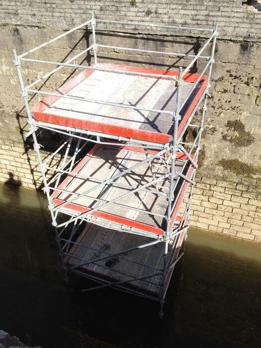 - Installation de plateformes d’échafaudages pour l’accès au fond de plusieurs écluses pour entretien et réparation